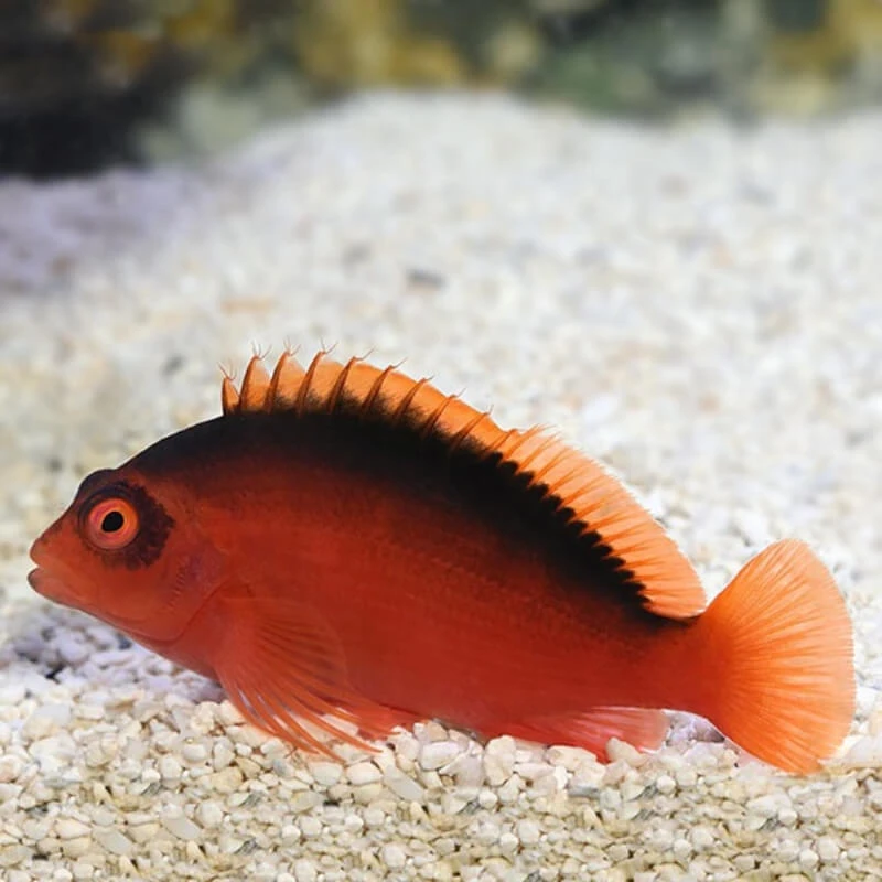 - Tank Size: A minimum of 30 gallons is recommended. Because Flame Hawkfish are perching fish rather than active open-water swimmers, the footprint of the tank matters more than height.