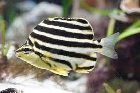 Appearance: It features a deep, compressed body with striking diagonal black stripes over a yellow-to-silver background. It typically grows up to 6 inches (16 cm) in length.